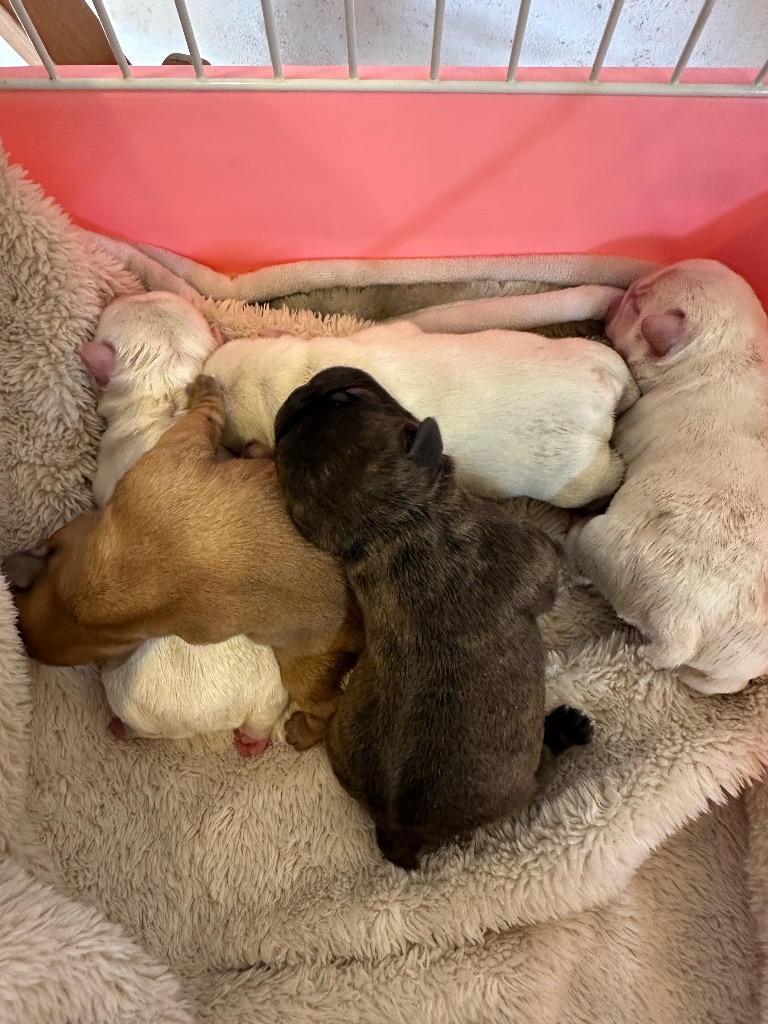 パパ ハニーパイド ふうたろうママ ブリンドル びび12月7日生まれホワイト&クリーム ♂2ブリンドル ♂1ホワイト&クリーム ♀1フォーン ♀1みんな元気に育ちます様に🙏