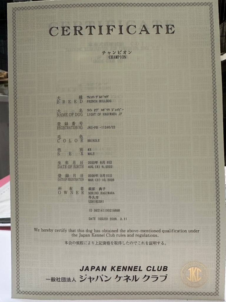 この度、JKCチャンピオンが完成いたしました🏆✨